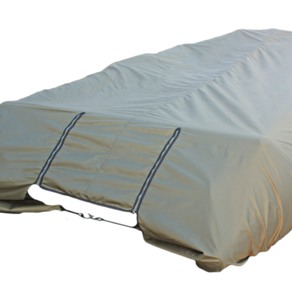 Тент плотно закрывает лодку, включая баллоны, что обеспечивает надежную защиту от дождя, снега, уф-излучения, грязи и пыли.